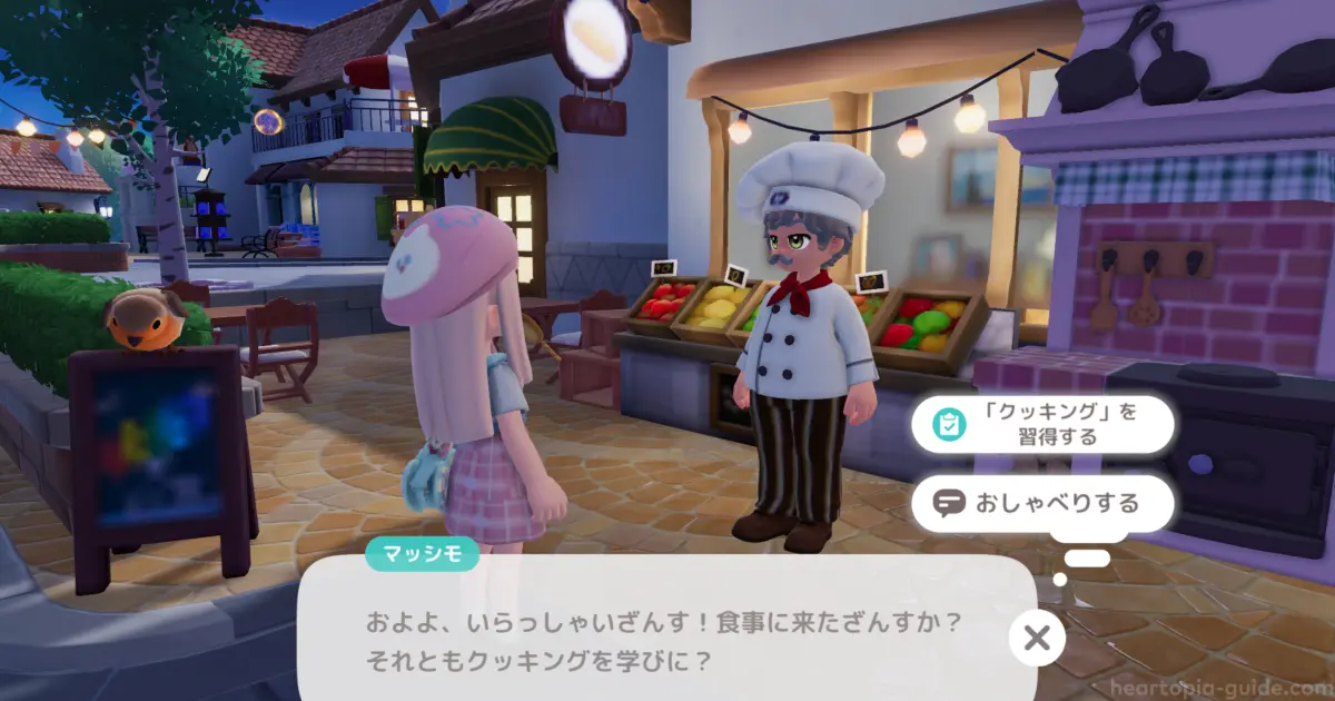 クッキングはメインストーリーを進め、開拓者協会レベルがLv.5 / Lv.8 / Lv.11になった際にマッシモから習得できます。ただし「虫捕り」「野鳥観察」も同じタイミングで解放可能になり、一度に解放できるのは1つだけです。どの趣味から習得するかは慎重に選びましょう。