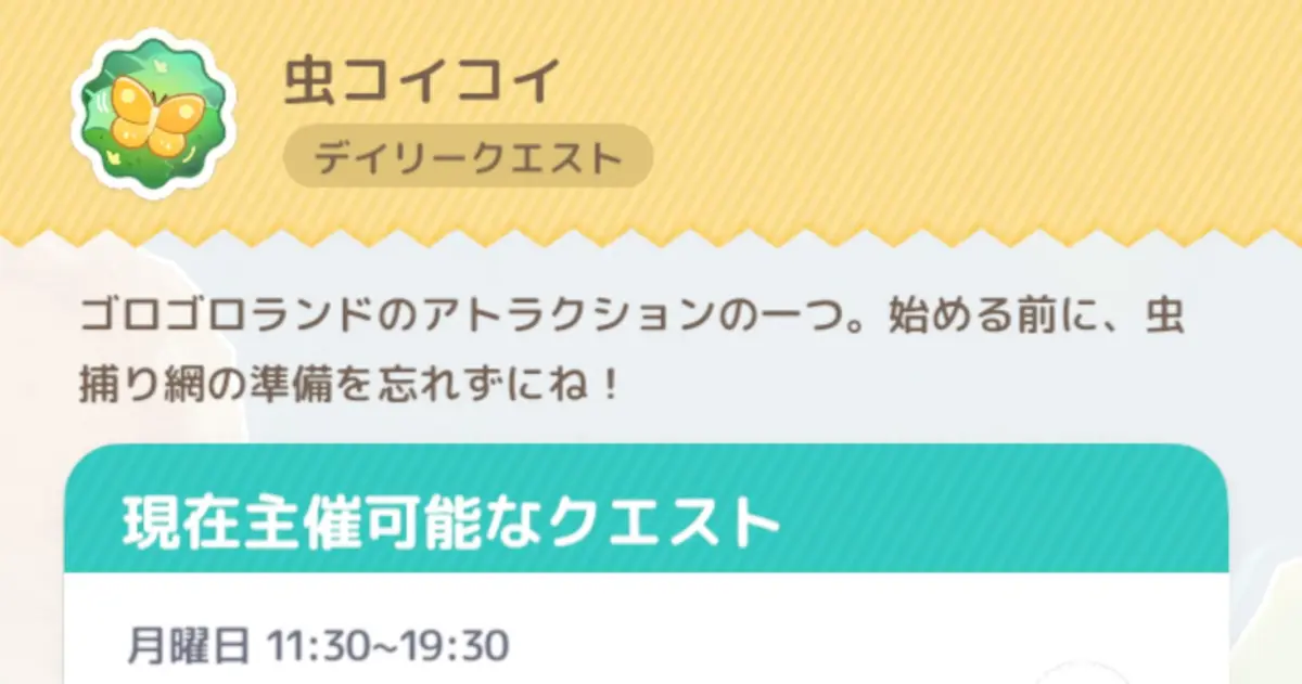 • 虫コイコイクエスト:虫捕り解放後、エリックから電話 → 浪花に話しかける → エリックに会う → エリックに報告で完了