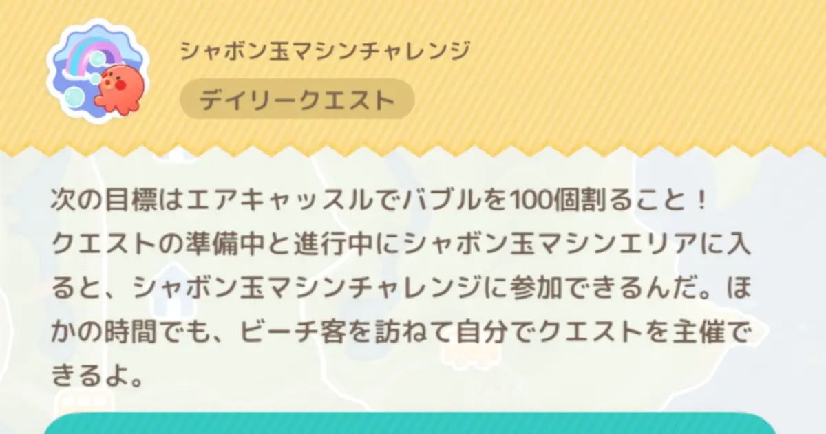 • クエスト中に出現するバブルには獲得効率アップなどの効果がある。見つけたら積極的に取ろう